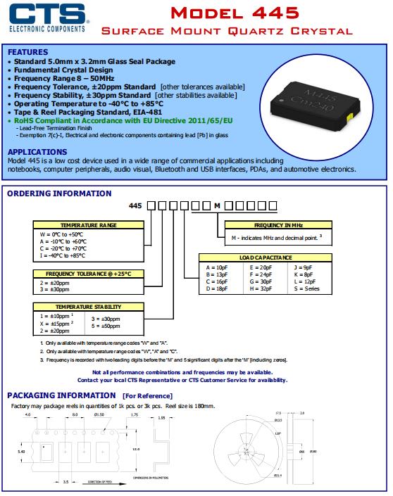 | 晶振規格參數 | 型號445 | |