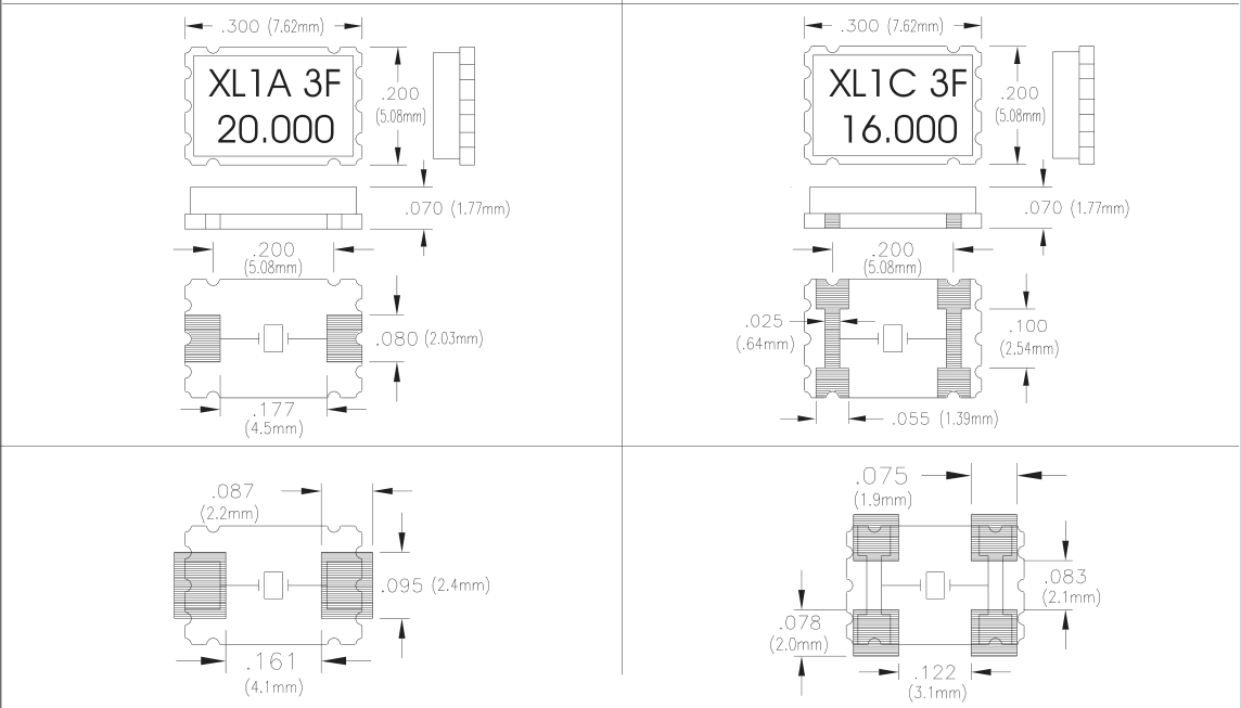 | XL-1C-020.0M | Connor-Winfield | XL-1C | 20MHz | ±50ppm | ±50ppm | 16pF | 40 Ohm | -10°C ~ 60°C |