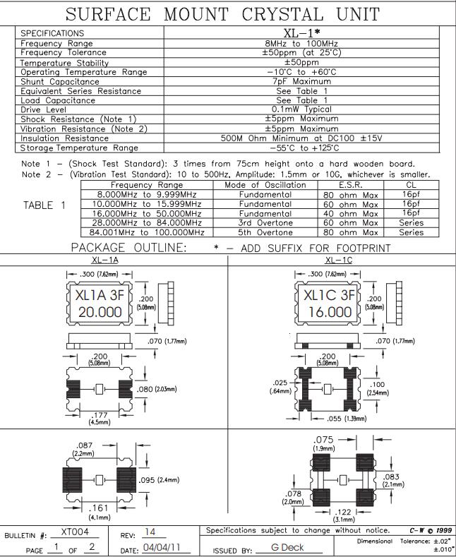 | XL-1C-018.432M | Connor-Winfield | XL-1C | 18.432MHz | ±50ppm | ±50ppm | 16pF | 40 Ohm | -10°C ~ 60°C |