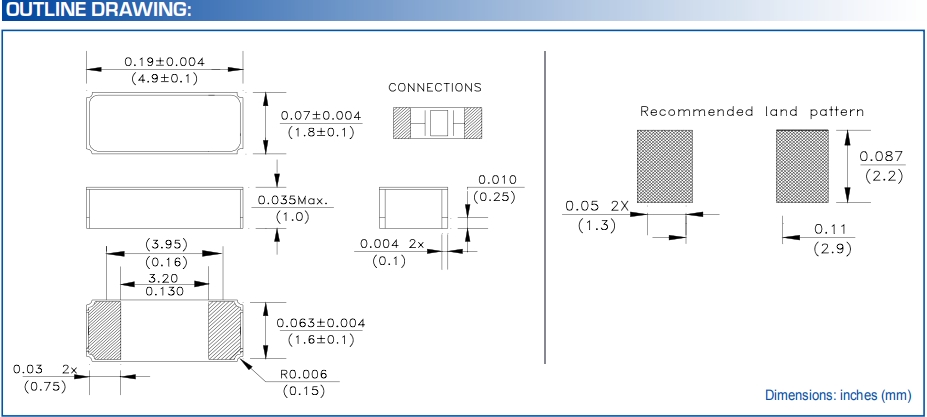 | 頻率溫度特征 | f_tem | ±50× 10-6 /-30°C~+85°C | 超出標準的規(guī)格請聯(lián)系我們. |
