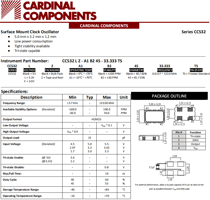 Cardinal晶振,CC532晶振,石英晶體振蕩器.5032mm體積的石英晶體振蕩器有源晶振,改產(chǎn)品可驅(qū)動2.5V的溫補晶振,壓控晶振,VC-TCXO晶體振蕩器產(chǎn)品,電源電壓的低電耗型,編帶包裝方式,可對應(yīng)自動高速貼片機自動焊接,及IR回流焊接(無鉛對應(yīng)),為無鉛產(chǎn)品,超小型,質(zhì)地輕.產(chǎn)品被廣泛應(yīng)用到集成電路,程控交換系統(tǒng),無線發(fā)射基站.