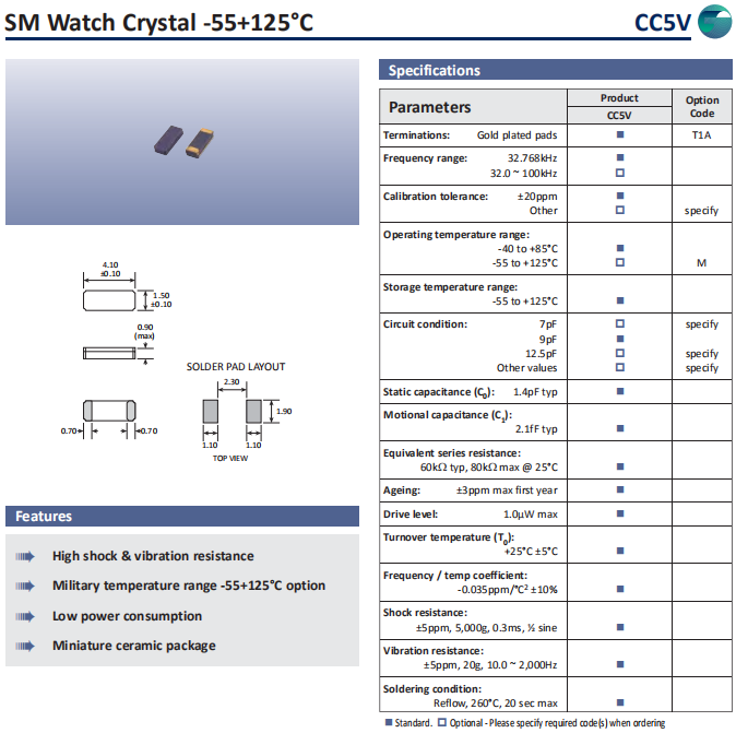| Golledge晶振 | 單位 | CC5V晶振 | 石英晶振基本條件 |