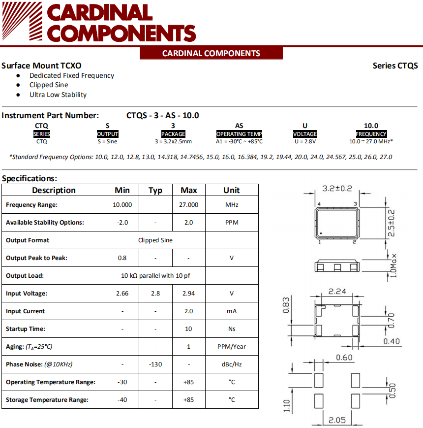 Cardinal晶振,CTQS晶振,溫度補(bǔ)償晶振.貼片式石英晶體振蕩器,低電壓啟動功率,并且有多種電壓供選擇,比如有1.8V,2.5V,3.3V,3.8V,5V等,產(chǎn)品被廣泛應(yīng)用于,平板筆記本,GPS系統(tǒng),光纖通道,千兆以太網(wǎng),串行ATA,串行連接SCSI,PCI-Express的SDH/SONET發(fā)射基站等領(lǐng)域.符合RoHS/無鉛.