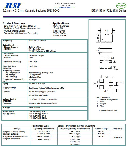 ILSI晶振,I533晶振,溫補晶振.貼片石英晶體,體積小,焊接可采用自動貼片系統,產品本身小型,表面貼片晶振,特別適用于有小型化要求的電子數碼產品市場領域,因產品小型,薄型優勢,耐環境特性,包括耐高溫,耐沖擊性等,在移動通信領域得到了廣泛的應用,晶振產品本身可發揮優良的電氣特性,滿足無鉛焊接的高溫回流溫度曲線要求.
