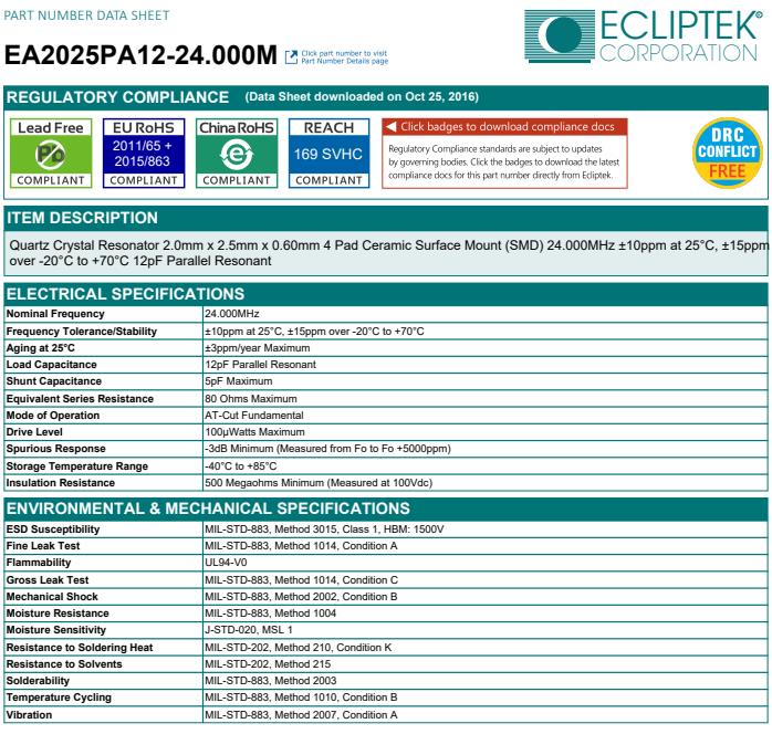 日蝕高品質(zhì)晶振,EA2025PA12-24.000M晶振,無源四腳晶振,ECLIPTEK已經(jīng)實施了中國對危險物質(zhì)(RoHS)的限制措施,以回應(yīng)國際社會對鉛(鉛)和其他有害物質(zhì)在電子部件和組件制造中所使用的有害物質(zhì)的擔憂。ECLIPTEK公司致力于保護環(huán)境,作為負責(zé)任的企業(yè)公民。ECLIPTEK晶振一直在努力解決電子行業(yè)的RoHS和無pb合規(guī)問題。我們的目標是逐步消除不兼容產(chǎn)品的使用,為我們的客戶提供符合要求的替代貼片石英晶振產(chǎn)品,以及發(fā)布的生命周期的結(jié)束,從而提供足夠的時間來批準兼容的產(chǎn)品。