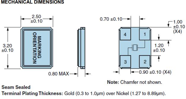 Ecliptek音叉晶體EB2532,EB2532JA12-27.000M-TR無(wú)源諧振器 尺寸圖