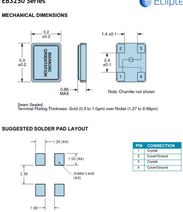 美國日蝕石英晶振EB3250,EB3250JA12-16.000M-TR水晶振動子,Ecliptek晶振,歐美進口晶振,石英晶體,石英晶體諧振器,無源晶振,音叉晶體,輕薄型晶振,型號EB3250,編碼EB3250JA12-16.000M-TR是一款金屬面貼片型的SMD晶振,尺寸為5032mm.頻率為16MHZ,采用高超的生產技術制作而成,具備高性能,高質量的特點,廣泛用于無線設備,智能產品等領域.