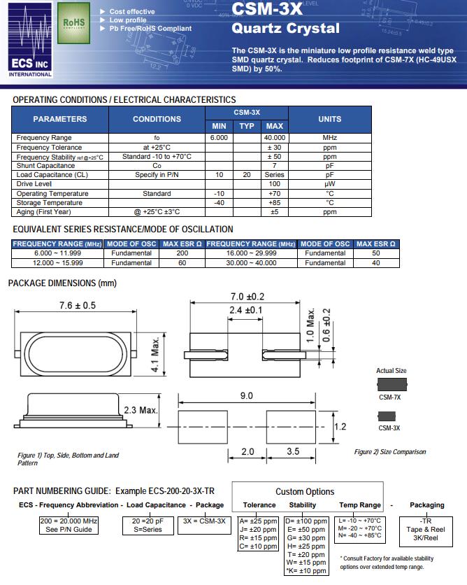| ECS-160-20-3X-TR | CSM-3X | 16MHz | ±30ppm | 20pF | -10°C ~ 70°C | HC49/US |