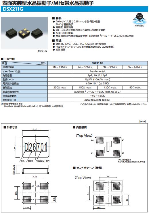 | 周波數許容偏差 | ±20×10−6 (at 25℃) | ||||||||||