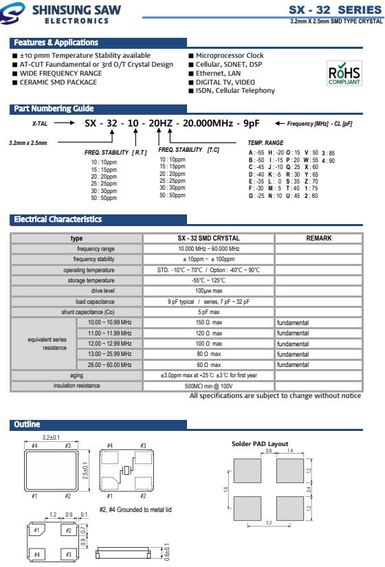 | type | SX - 32 SMD CRYSTAL | REMARK | |