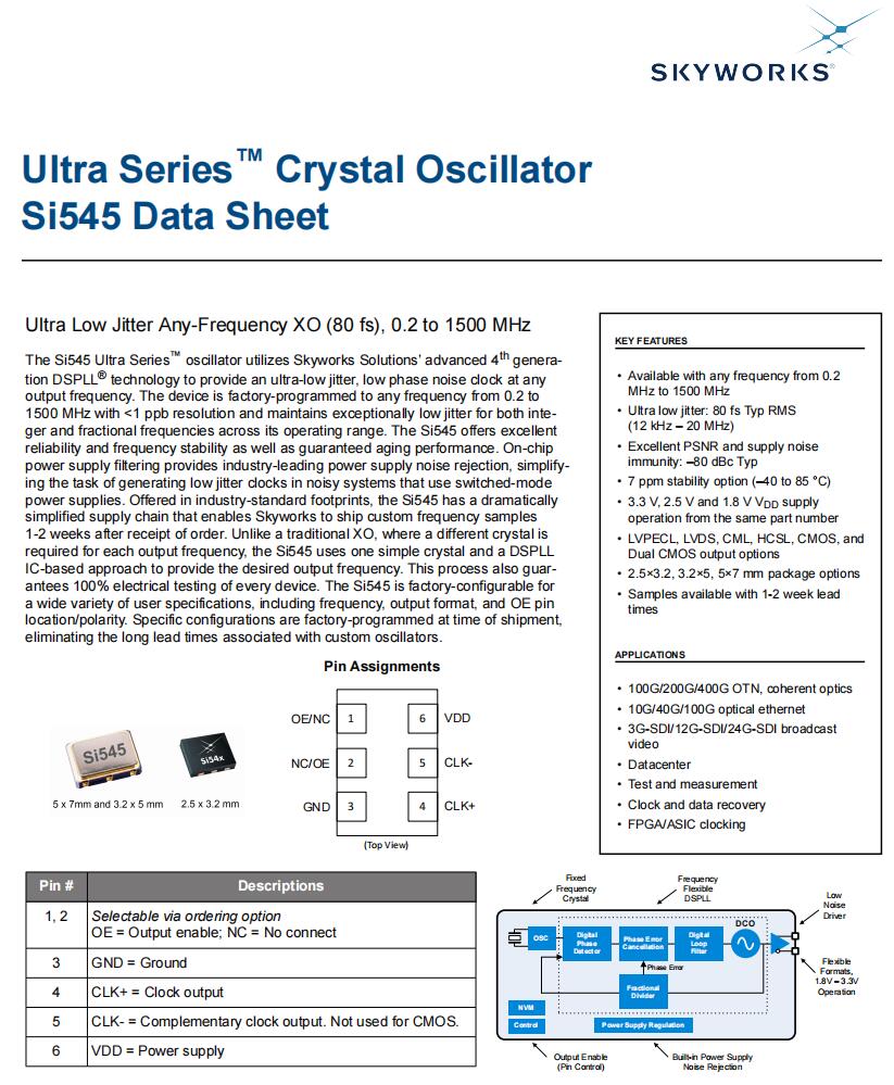 | 545AAA114M285BCG | Skyworks Solutions Inc. | Ultra™ Si545 | 114.285 MHz | LVPECL | 2.5V ~ 3.3V | ±20ppm |