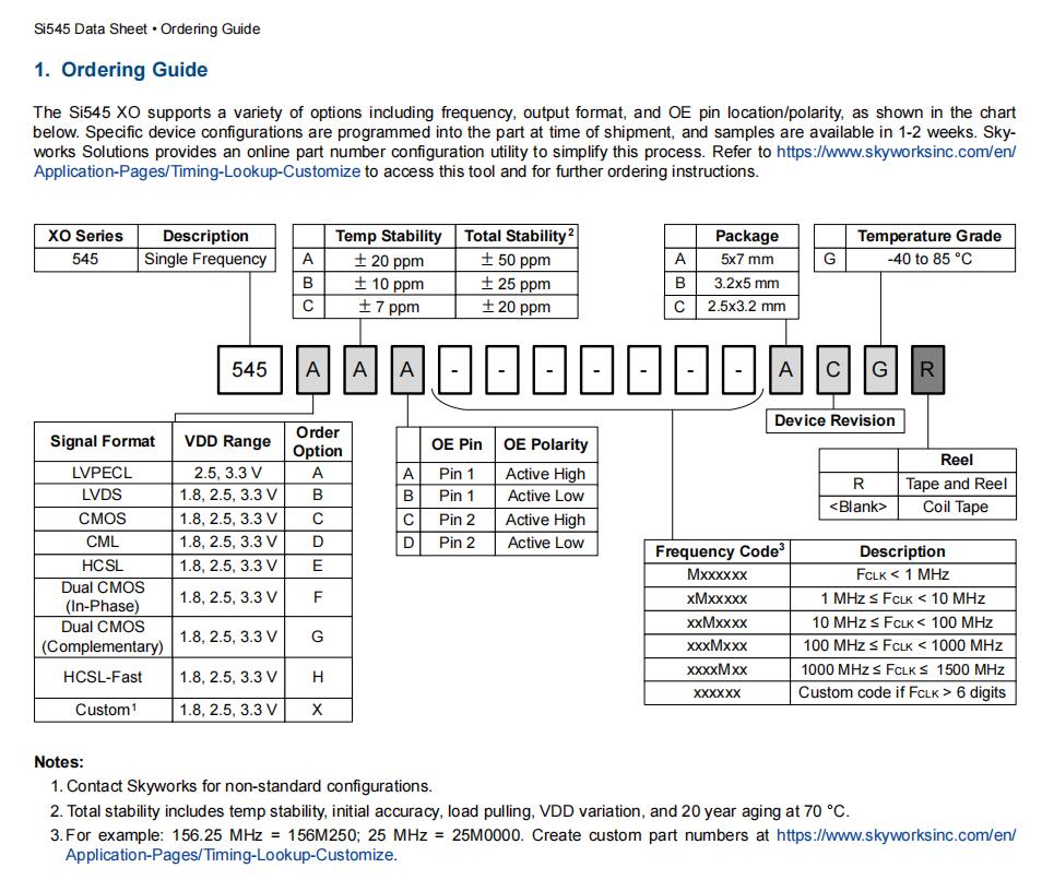 | 545AAB250M000BCG | Skyworks Solutions Inc. | Ultra™ Si545 | 250 MHz | LVPECL | 2.5V ~ 3.3V | ±20ppm |