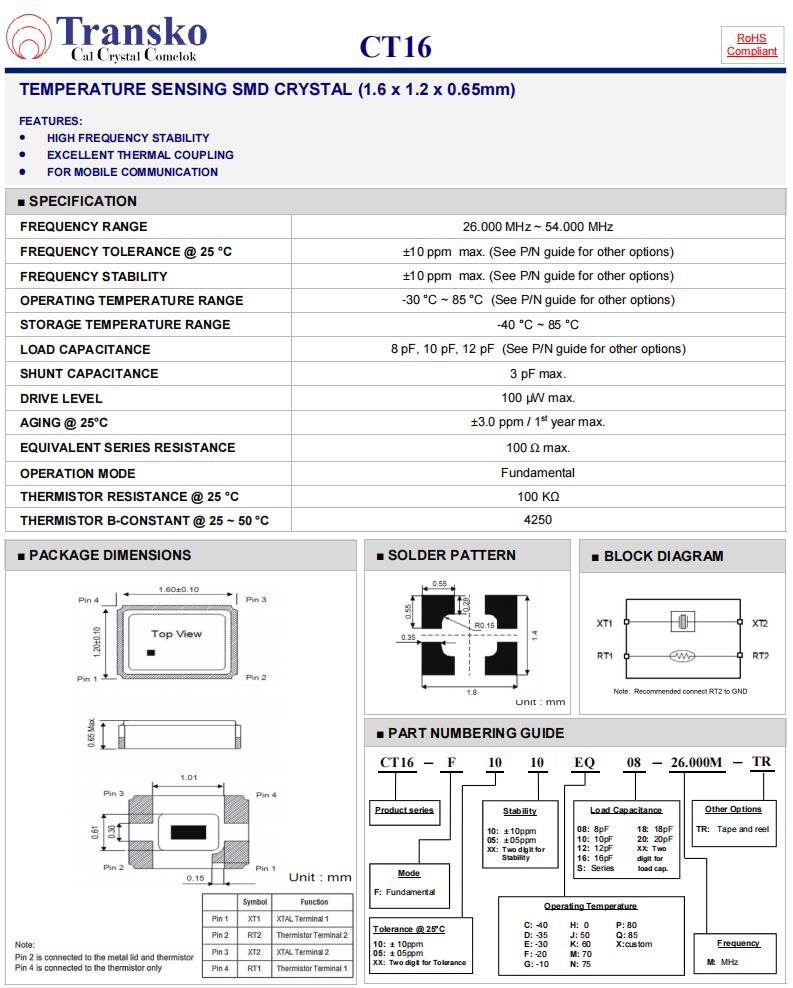 Transko晶振,CT16-F1010EQ12-32.000M-TR,6G移動通信晶振參數(shù)表