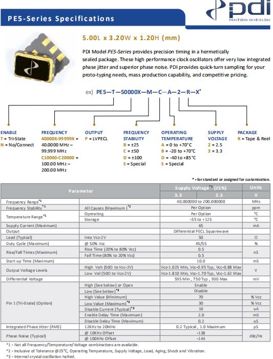 | Output | Differential PECL Squarewave | ||||||||||