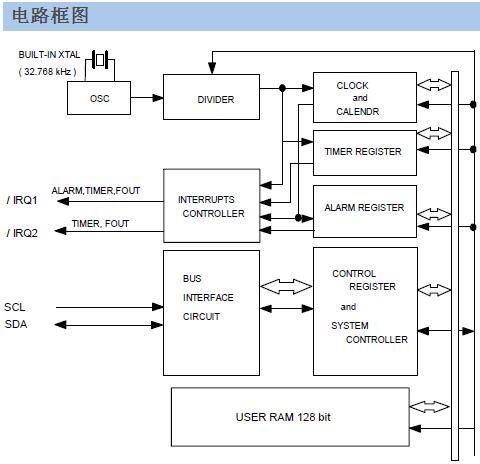 基本性能 時鐘和日歷、報警、定時器、頻率輸出、溫度傳感器與內建電源切換等