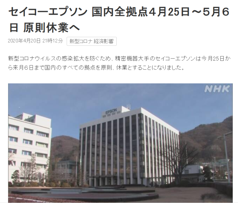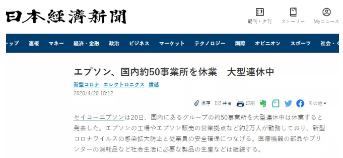 在日本企業(yè)中愛普生集團(tuán)不是首家因新冠病毒疫情影響停工的企業(yè)了,較上周有東芝也宣布在日本本土內(nèi)所有企業(yè)停工,相信最近相繼宣布的企業(yè)會(huì)越來越多。