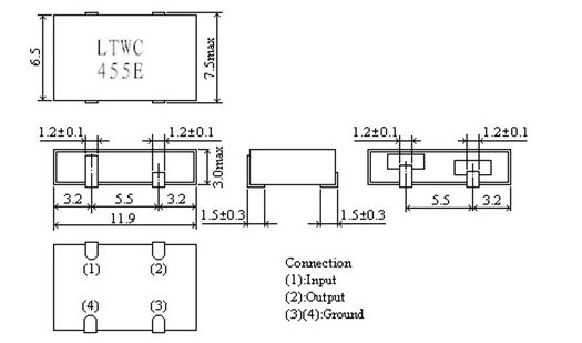 陶瓷貼片晶振,LTWC455E,陶瓷諧振器