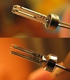 8將合格的諧振件套上外殼,倒插在電阻焊插盤上,送封焊工序。